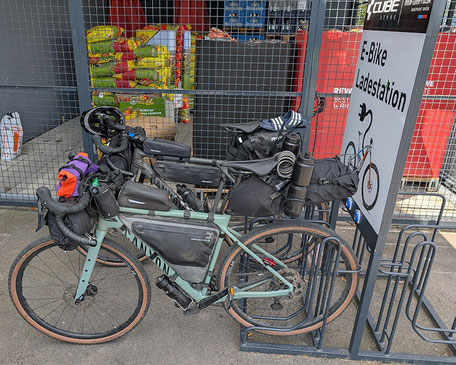 There are 1,046 kilometers between Hanover and Milan via Göttingen, Fulda, Würzburg and Ulm, through the Allgäu and past Lake Constance, then over the Alps at an altitude of 2,070 meters to Chur, Bellinzona and Lugano in Switzerland and finally to Milan in Italy. Always in their luggage on their gravel bikes are a tent, camping stove and sleeping bag. This allows them to remain flexible on their daily routes.