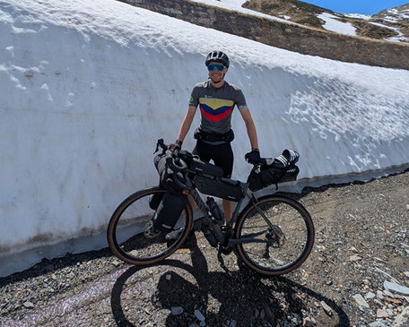 Ciao from Campo Mezzola in Italy. Today we crossed the Splügen Pass at an altitude of 2,114 metres in perfect sunshine. After a 20 km ascent over numerous hairpin